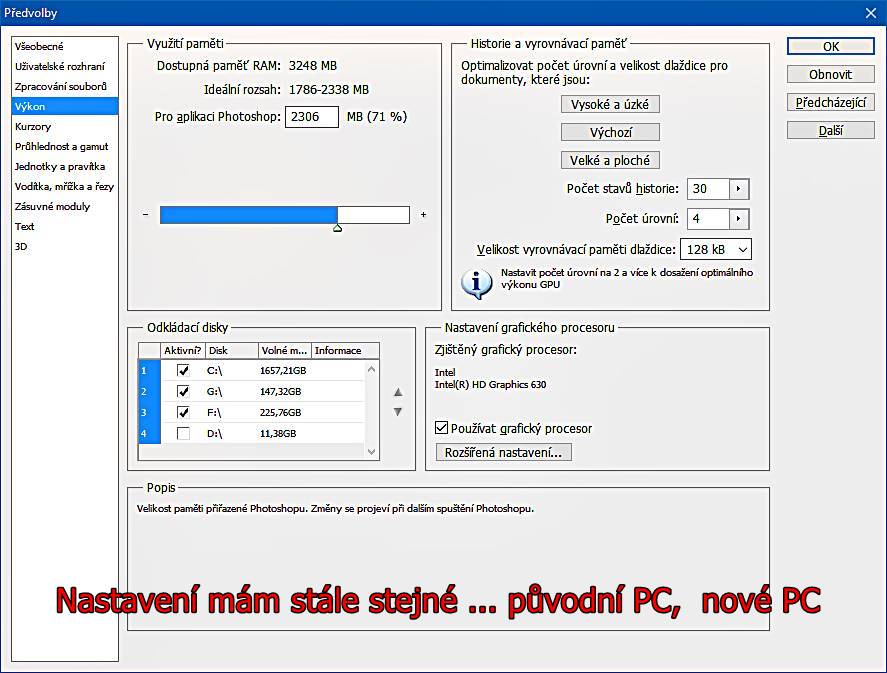 Ono teda celkove to PC z popisu nevypada zrovna jako typicka graficka stanice, ale jako kancelarsky stroj. Zalezi taky co presne v tom Photoshopu dela, ale RAM bude asi nejvetsi slabina.