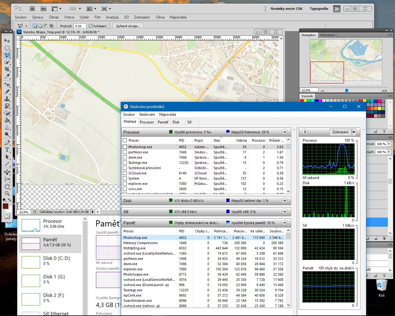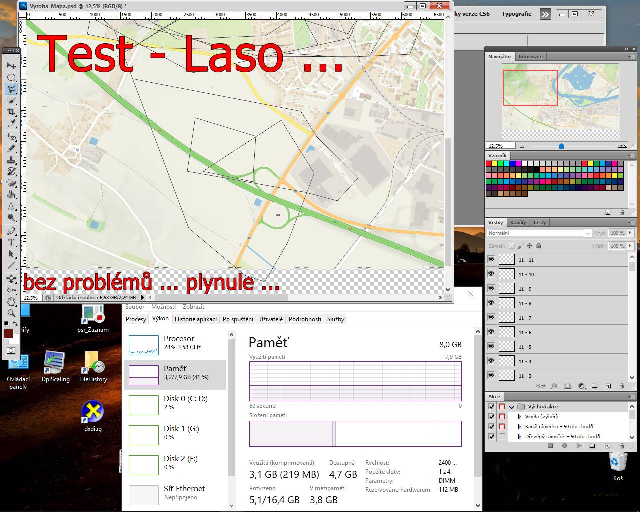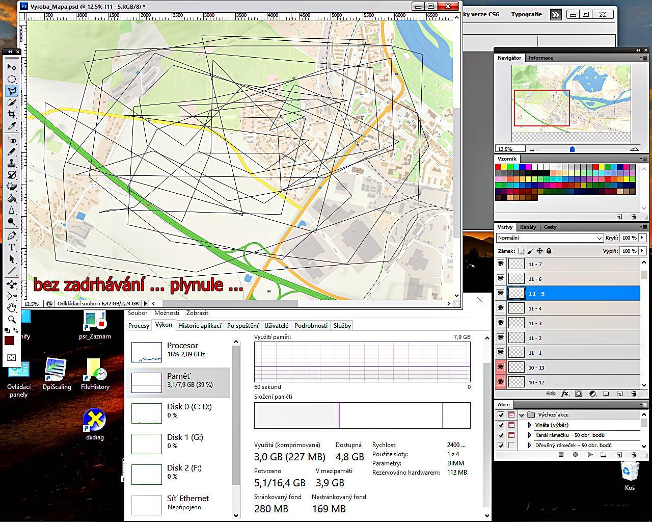 Taky by swap soubor photoshopu mel mit na tom SSD, aby to jelo rychleji.