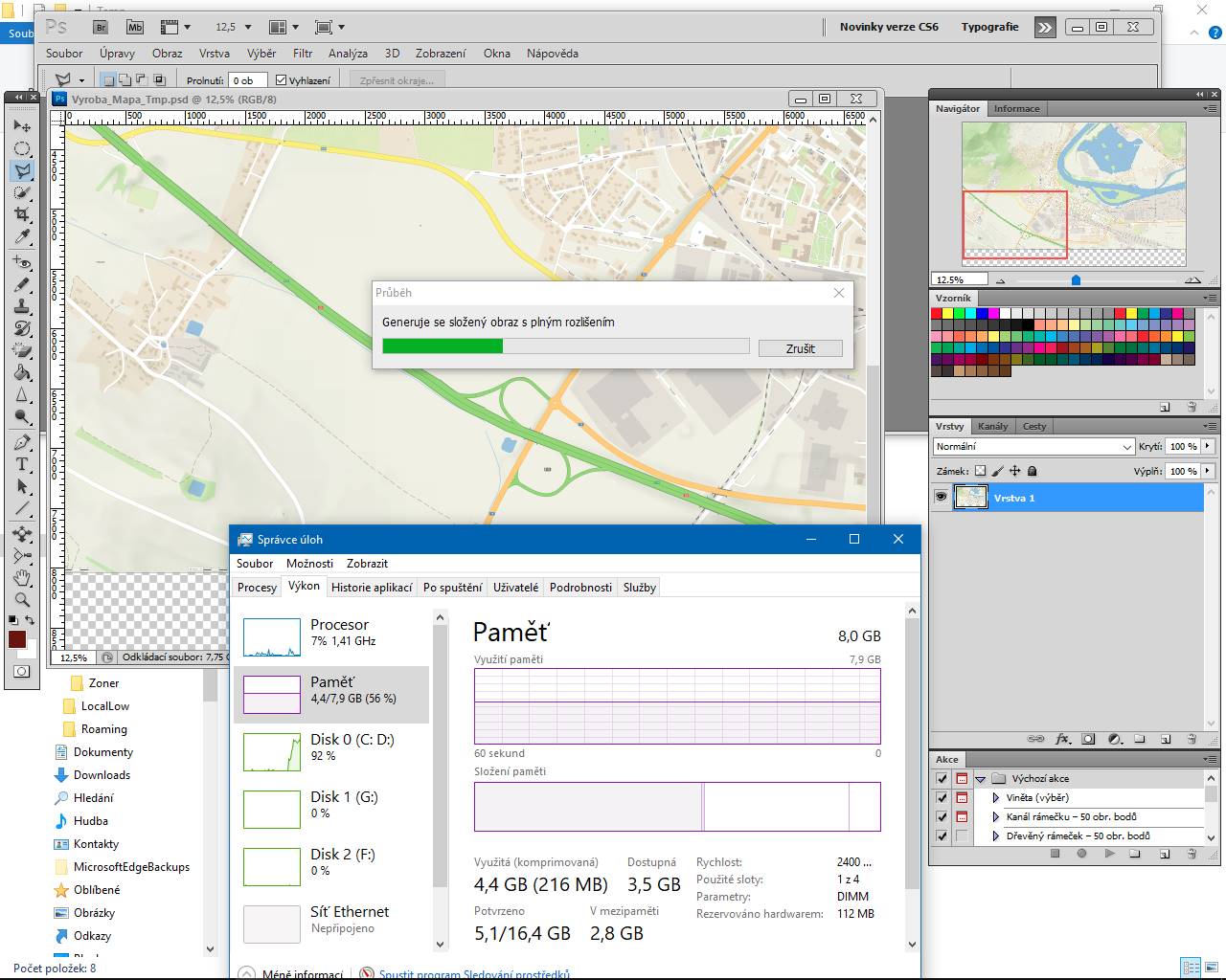Po cca 15 minutách práce, resp. jakmile dočasný soubor "Photoshop Temp[############]"