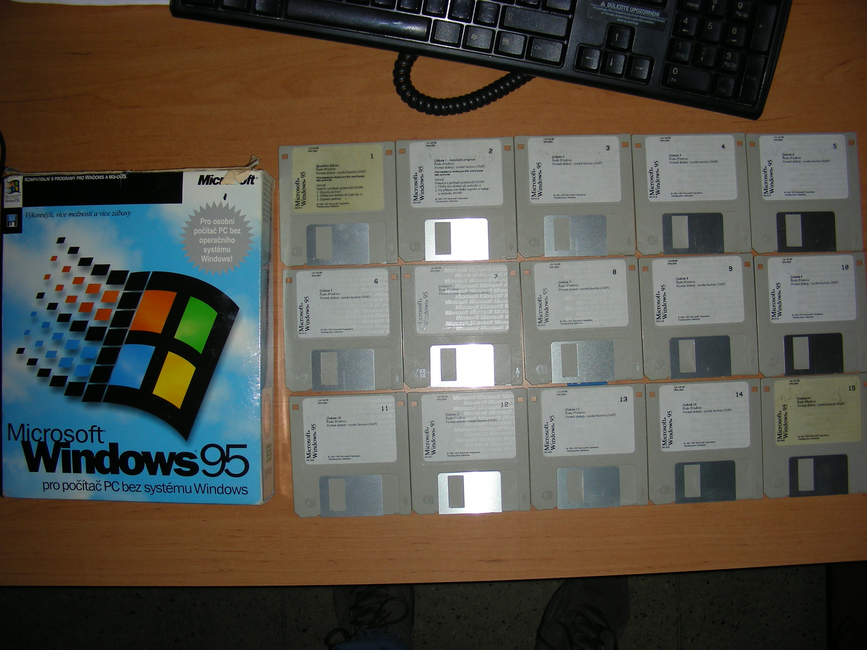 wir95 měl asi 40 disket, čili jsme koupili verzi na cd a šli na investice a velkofiremní it žebrat o vypalovačku za 3.000 (mitsumi 4x - takové rychlé dělo!)