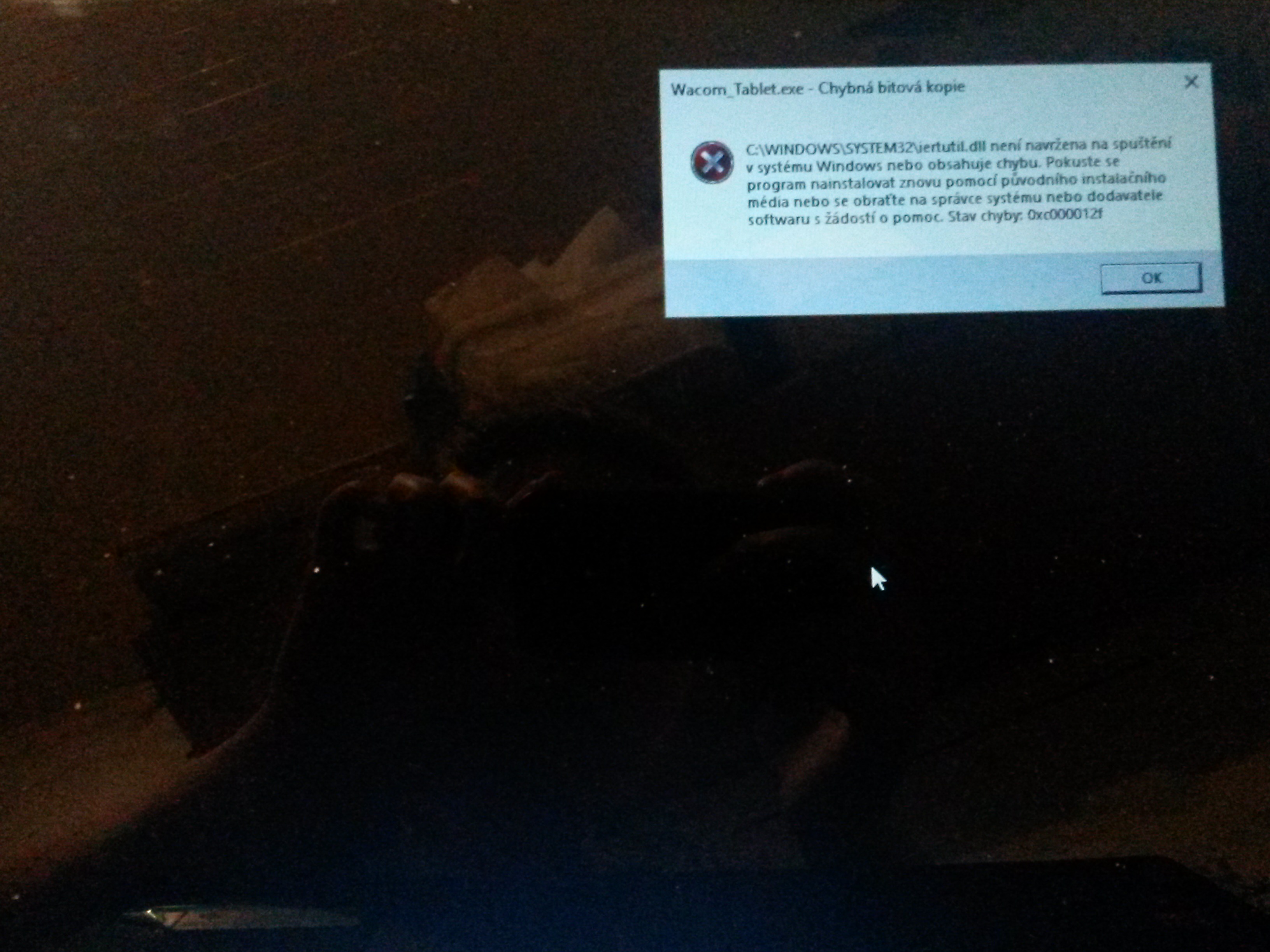 Cerna obrazovka a wacom_tablet.exe - chybná bitová kopie