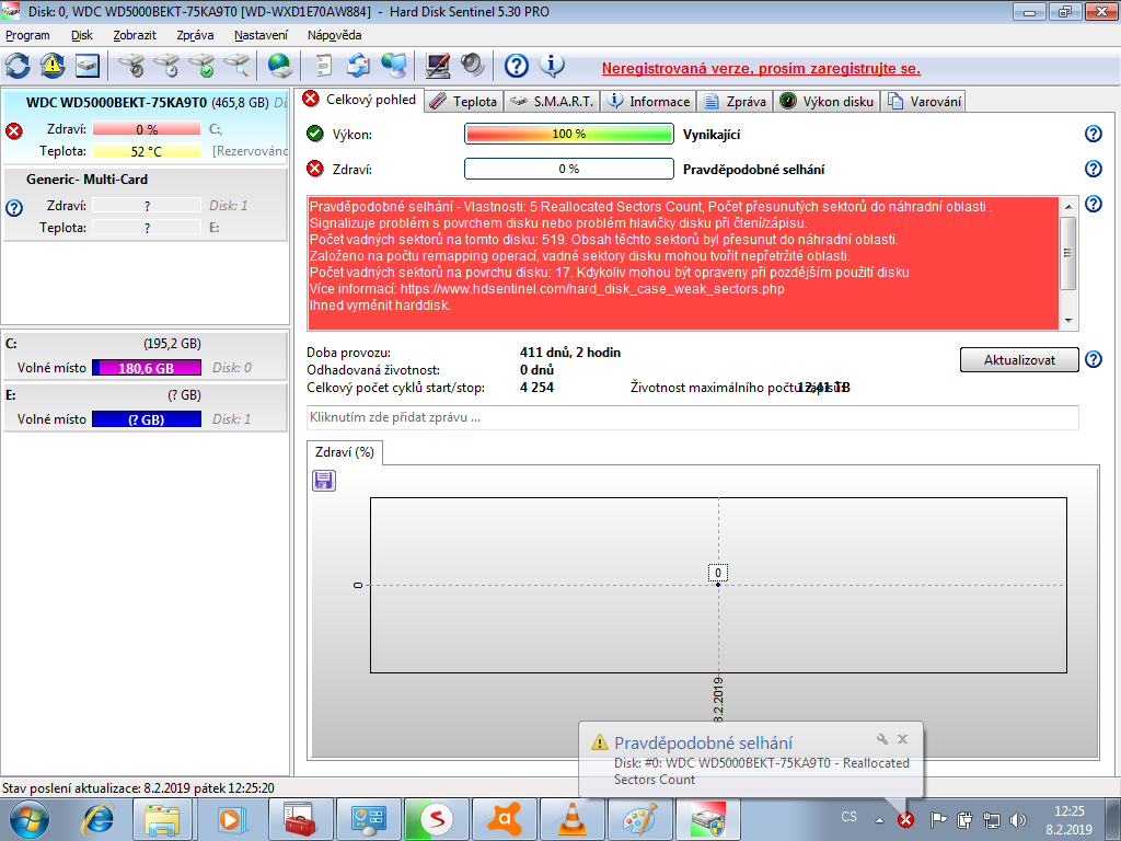 Dáváš nám to po částech. V tom případě bych to viděl na výměnu disku.