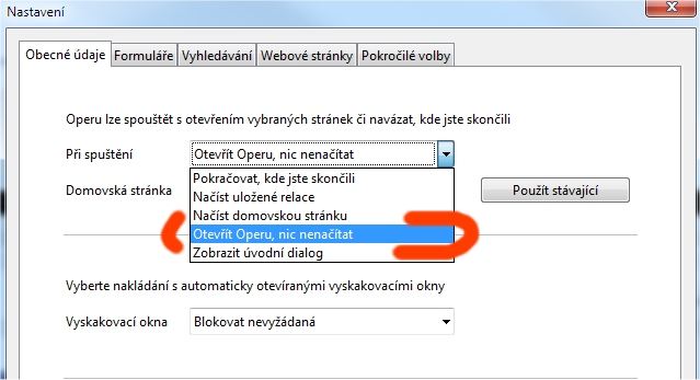 Ctrl+F12 (Opera 12.17), změň si otvírání po spuštění prohlížeče na něco jiného, než je označeno červ…