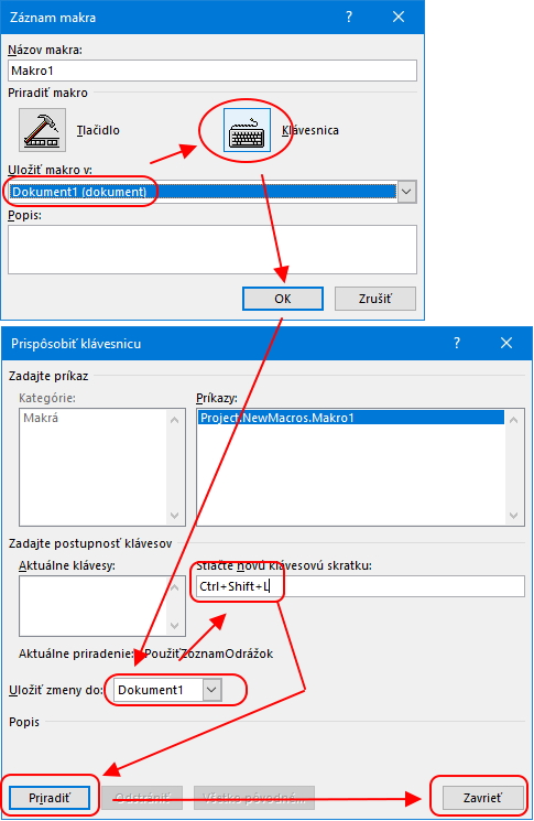 - vyber nejakú klávesovú skratku, ktorou budeš makro spúšťať