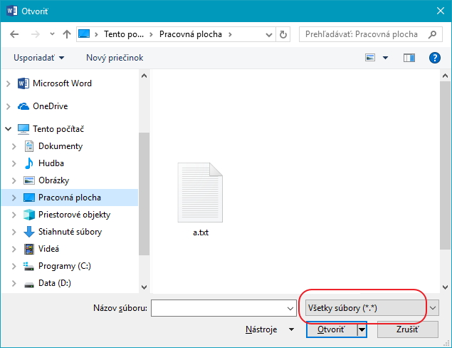 Vo Worde si riadne zvoľ Súbor - Otvoriť a v dialógovom okne si zvoľ typ súboru "všetky súbory (*.*)"