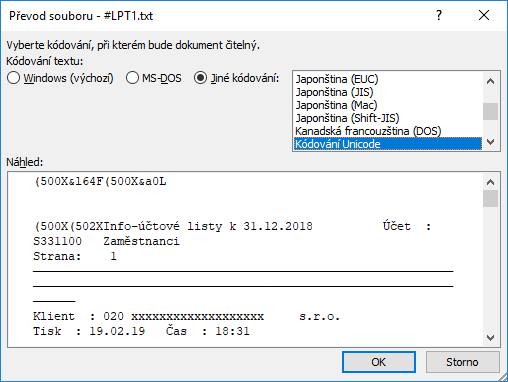 Teď to dělám tak, že #LPT1.txt otevřu ve Wordu 2007, přitom po otevření vybírám kódování: