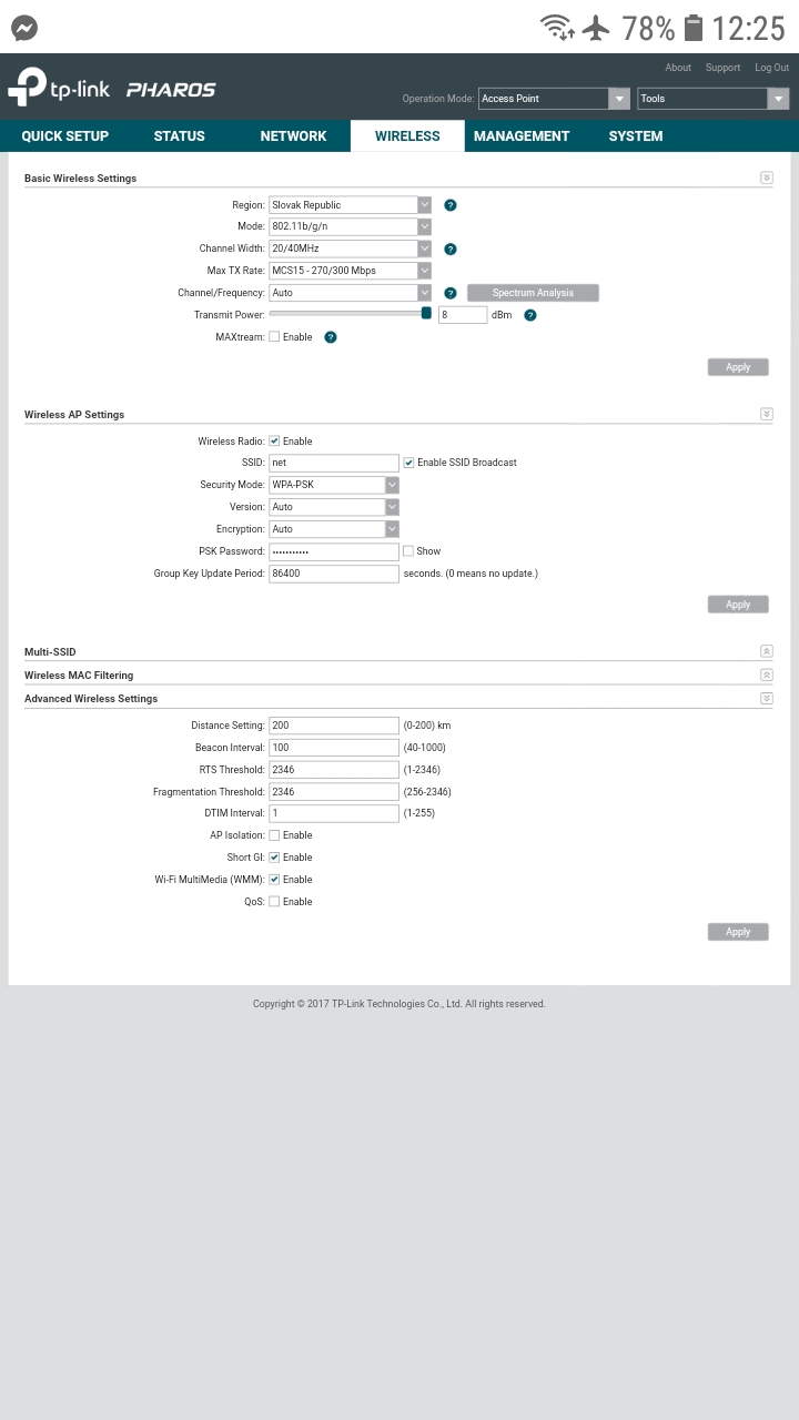 //podla foto to mam nastavene zmenil som len jeden parameter dole v advanced "distance settings" predvolene bola 0 dal som na 200 ale ziadny rozdiel. Stále 1 palicka ukazuje na wifi na mobile v tej istej vzdialenosti.
