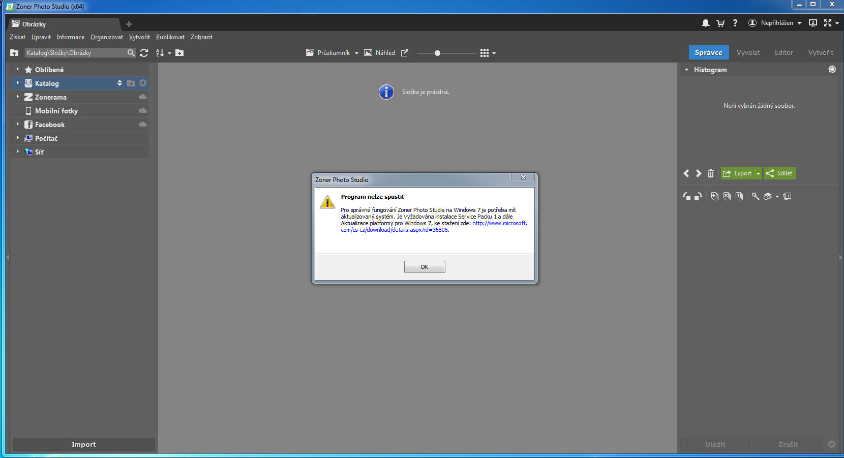Ahoj. Mám Win 7 64B a SP 1. Pro spuštění program Zoner Photo Studio X potřebuji SP vyšší. Dřívě jsem měl SP3, ale musel jsem z důvodu nového disku dát nový OS.
