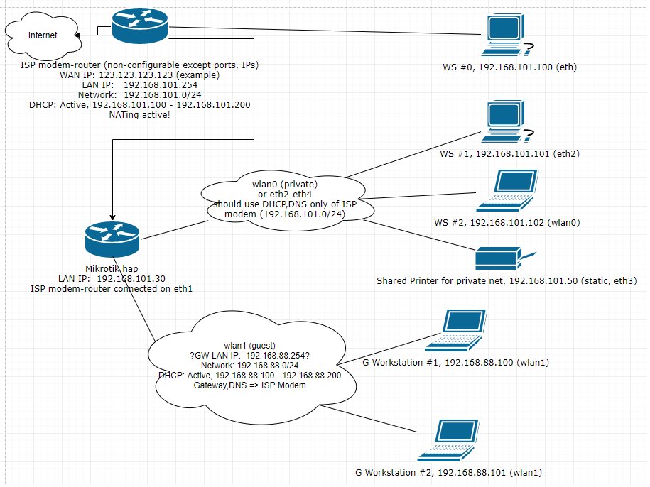 Povodny zamer bol zriadit wifi, a ked uz, tak na internom rozsahu (10.6.x.x), plus 2 porty v tom istom rozsahu. A pre navstevy zadefinovat zvysne 2 porty plus virtual Wifi ap na inej sieti (192.168.X.X)