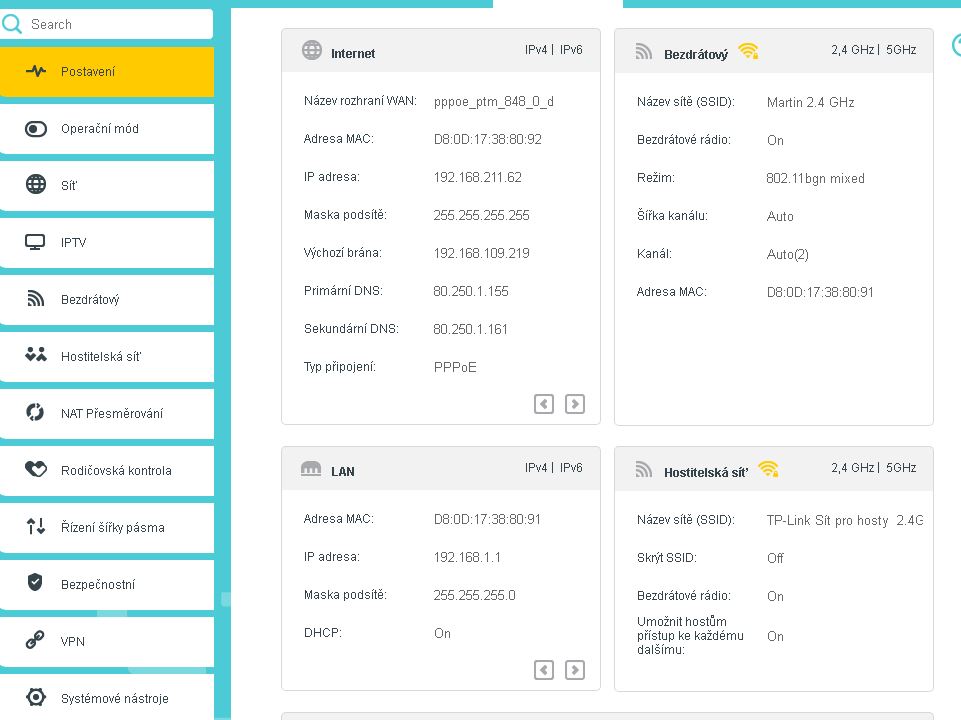 Jsou to screeny modemu jak ho mám nastavený.