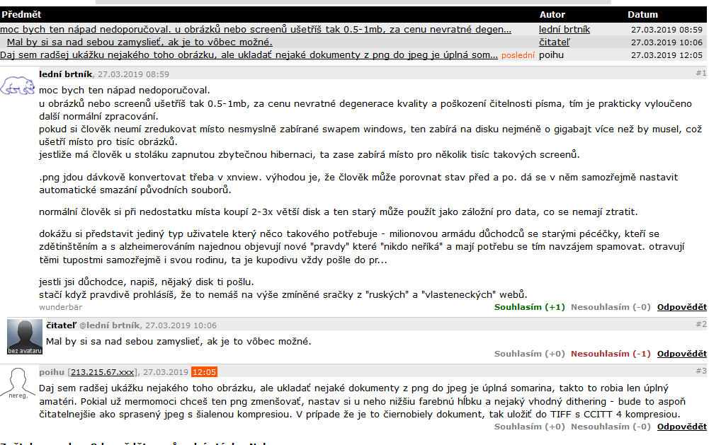 jen bych upresnil - png je vhodny format pro screenshot cehokoliv kde jsou velke plochy stejne barvy, treba psany text. Tam je uspornejsi nez jpeg, a pritom bezeztratovy. Ukazka v priloze: png1 vs. jpg1 - porovat si velikosti.