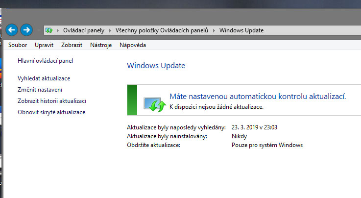 Windows Update_nevyhledává aktualizace