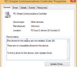 vsechny tri problemy jsou / The drivers for this device are not installed. (Code 28)