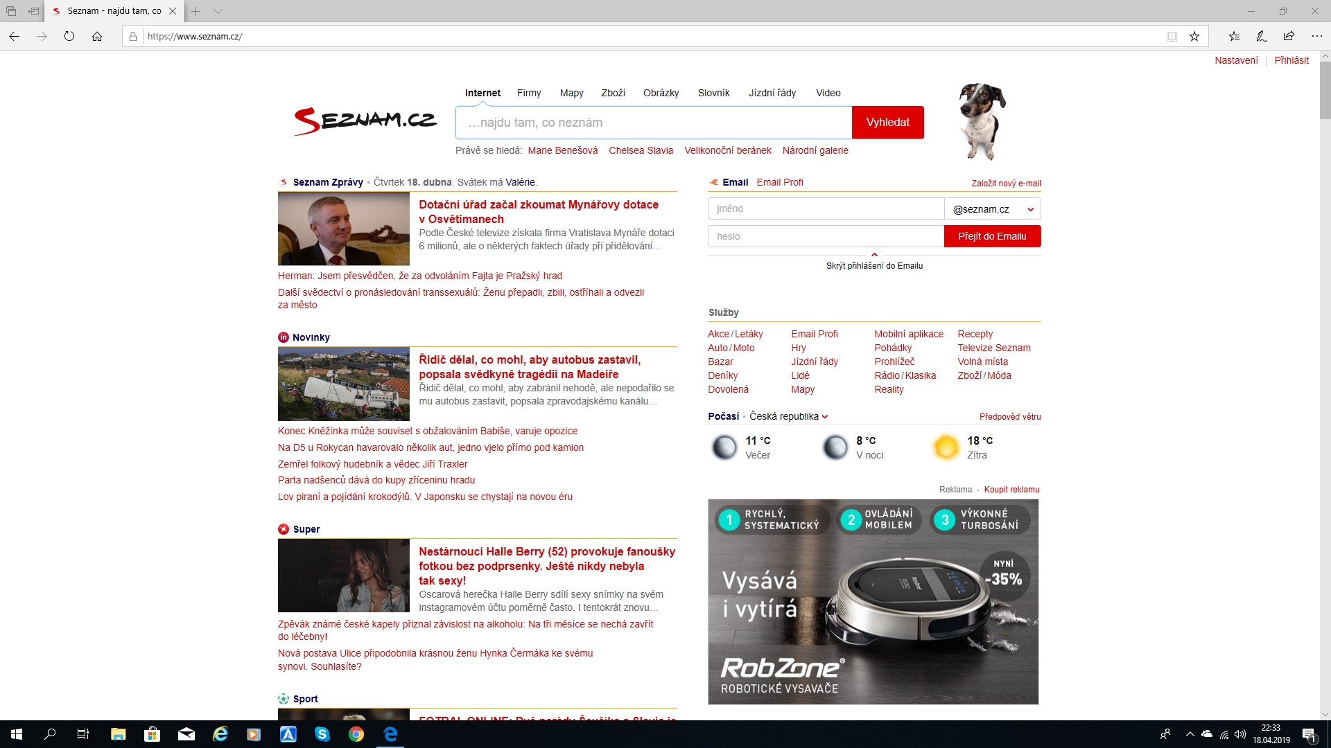 Ono to vypadá, že Seznam hodil na Windows 7 + IE bobek.
