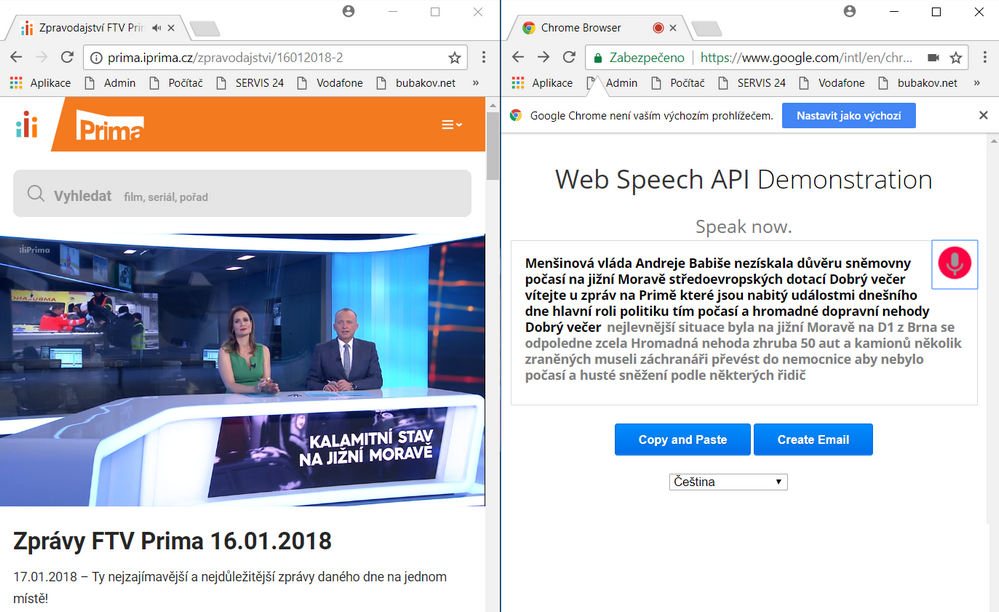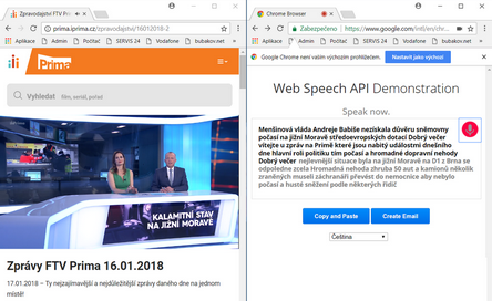 Test titulků automatem. Tobě to z asi tří vět napsalo jen pár slov. U zpráv TV Prima to docela psalo…