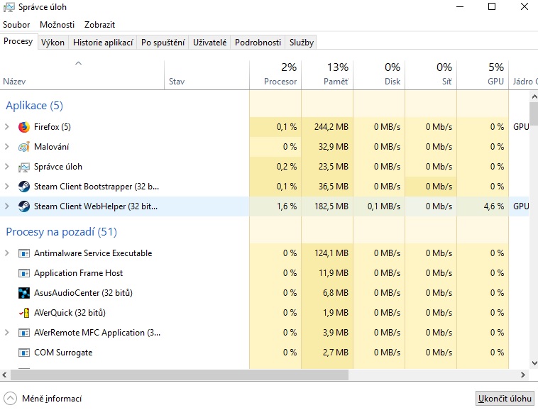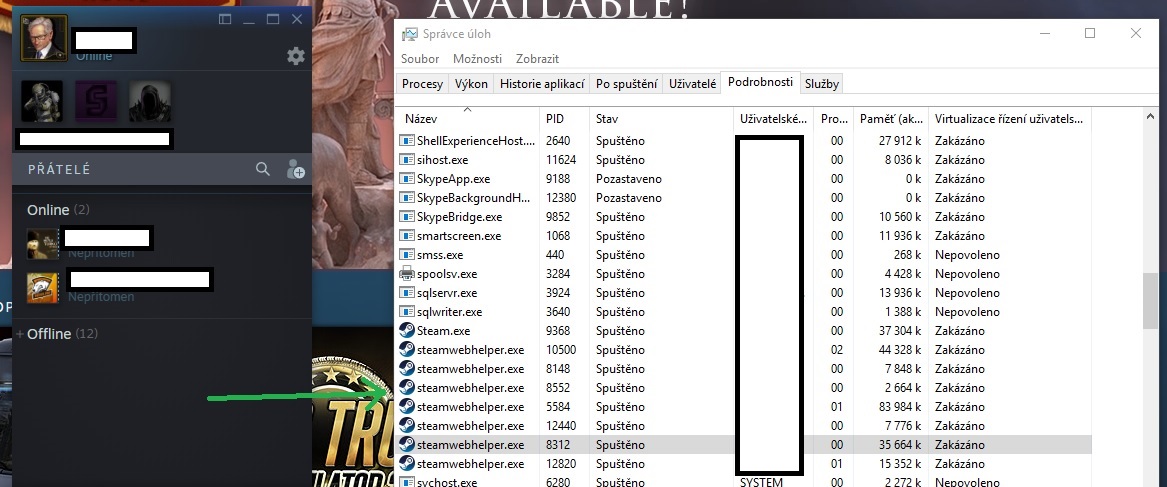 Stačí spustit steam, počkat na chyby a postřílet procesy Steam Client webhelper: