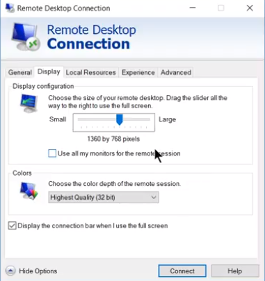 - Najdes to v tom hornim panelu, nebo v "Display" -> "Display configuration". (Win + R -> Mstsc)