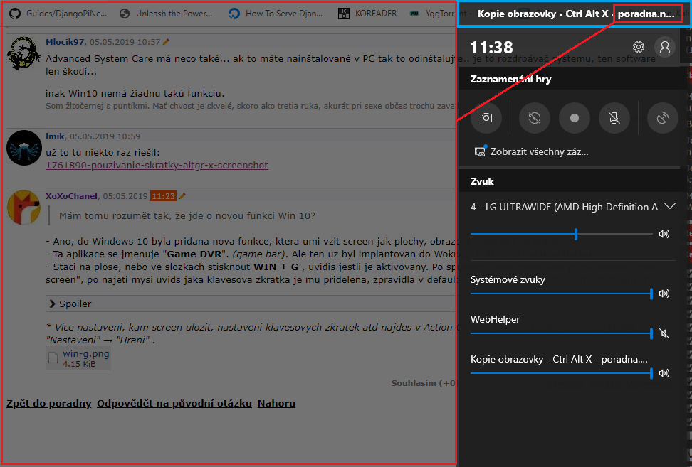 - Ta aplikace se jmenuje "Game DVR". (game bar). Ale ten uz byl implantovan do Woknos10 jiz pred nejakou dobou. Mohl by to delat i MIXER, ale o tom pochybuji.