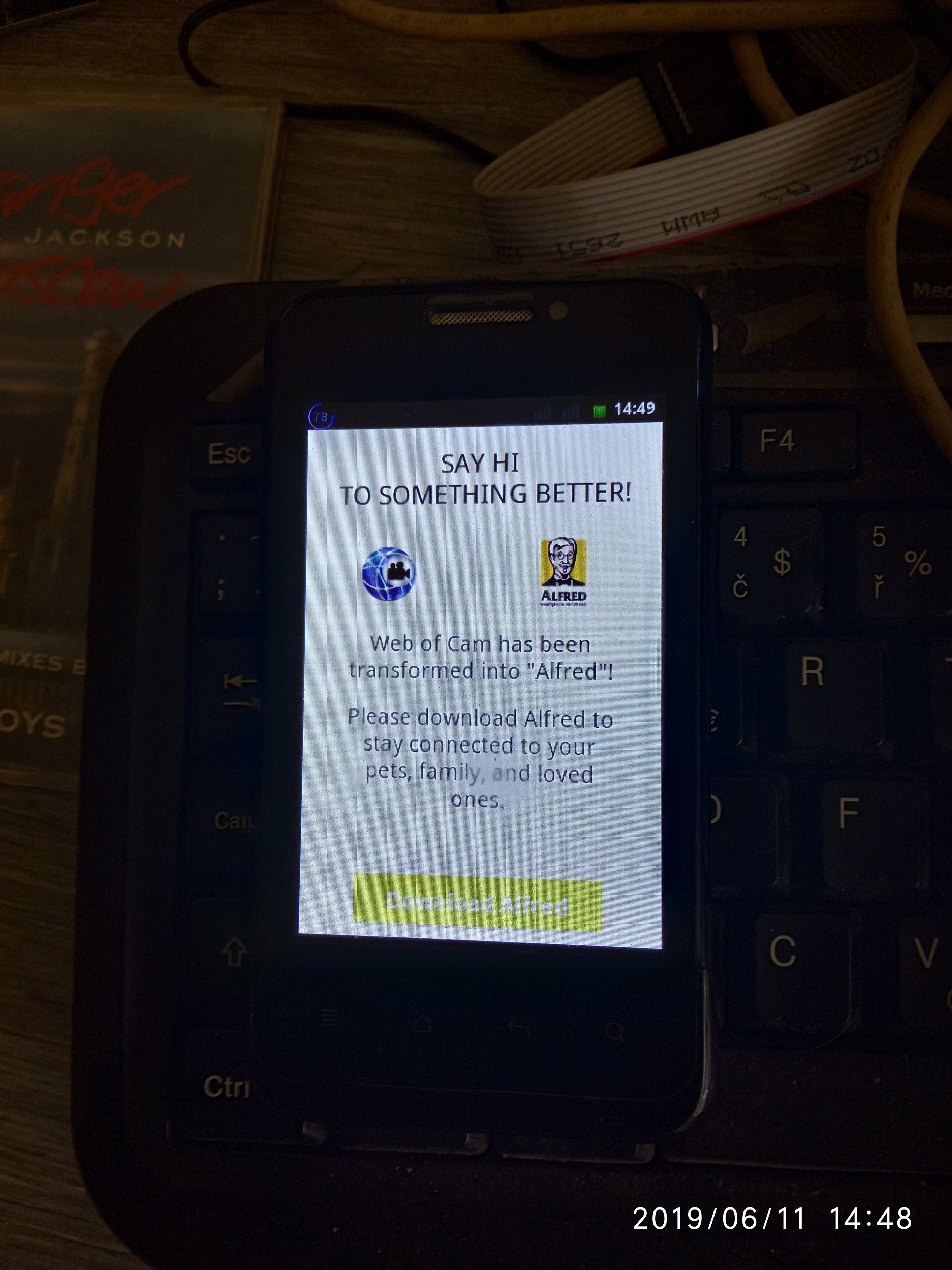 Já jsem si na starý telefon Iget star P350 nainstaloval tuto aplikaci z důvodu že ji stačí android 2.3.3 , Free Wi-Fi Camera (Web of Cam) ono to chce nainstalovat Alfreda co to je? díky
