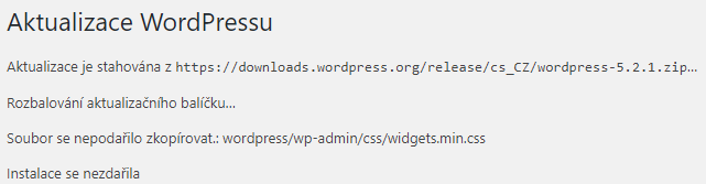 WordPress - Aktualizace na nejnovější verzi se nezdařila (nepodařilo se zkopírovat konkrétní soubor)