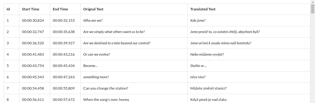 - V kazdém pripade, z pocatku jsem také upravoval cas v titulkach, ale rychle jsem presel primo na preklad tech (protoze to byla piplacka, trvalo to dlouho, bylo to zbytecne komplikované), které byly spravne synchronizované. Tak jsem stahl treba anglické a ty jsem nechal jenom prelozit. (v mém jazyku, je stavba very podobna ENG, tak i delsi vety nemaji problém, u cestiny me to pripadne stale akceptovatelné. Hodne SW sice pouziva GTranslate ale maji i vlastni motor, ktery prelozeny text jeste upravuje, tak vysledek prekladu neni vzdy takovy, jako preklad pres samotny Google Translate na Google.).
