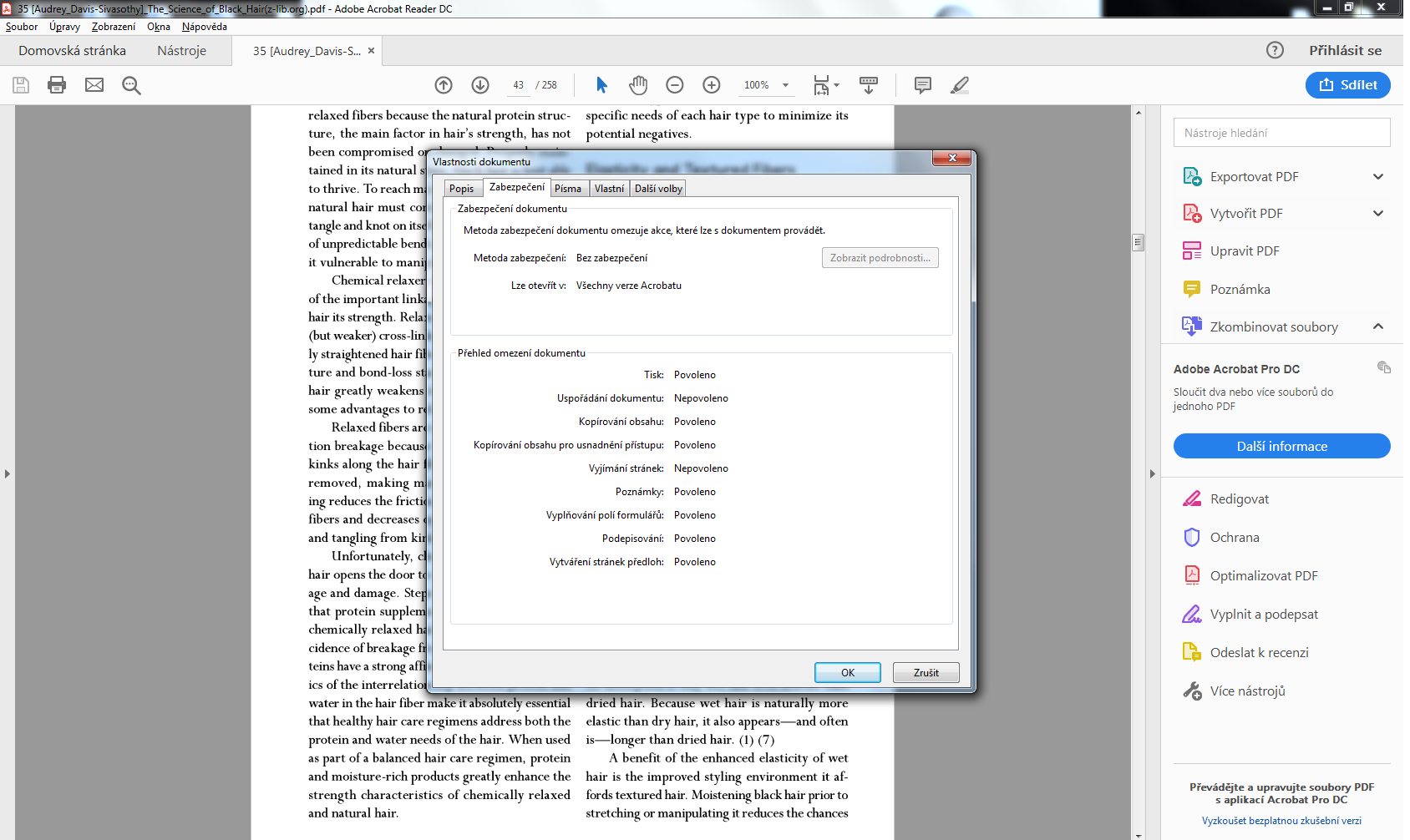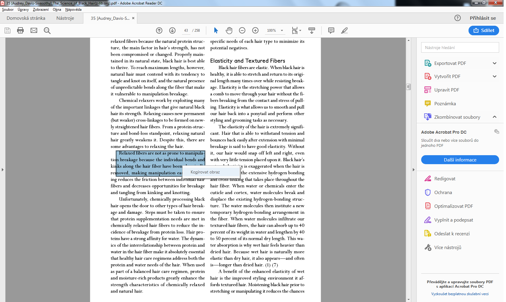 Můžu kopírovat jen obraz. U ostatních .pdf souborů můžu text kopírovat normálně. Verzi Readeru mám aktuální a soubor zabezpečený není.