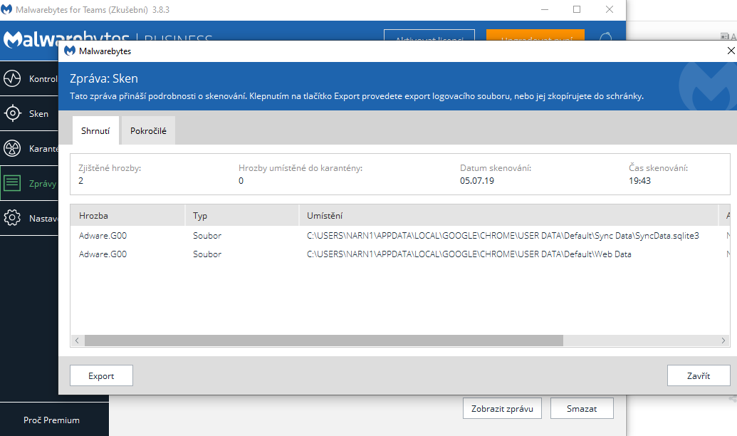 šel jsem si stahnout ještě malwarebytes, a ten našel Adware.G00 (viz přiloha) tak jsem se toho taky zbavil