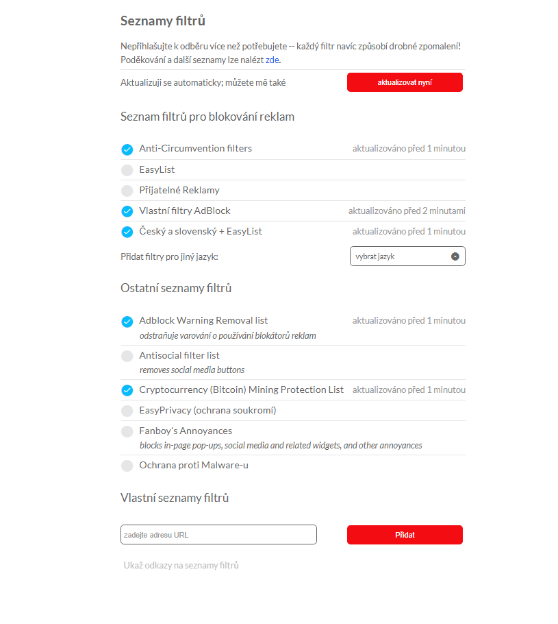 musim priznat ze v nastavení adblocku jsem se nehrabal, takhle vypadá současné nastavení