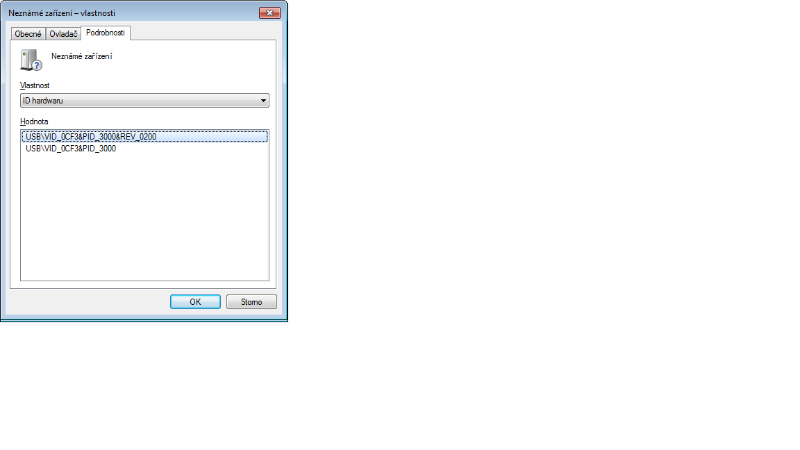 To jsem si tak nějak myslel ale tam kde je "neznámé zařízení" pro to to ani ovladač nenajde tak nevím co stím