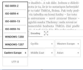 TiP ~ Jako alternativu ctacky bych ti doporucil bych ti nainstalovat Koreader (ma i cestinu) na cteni knih, tam muzes character encoding nastavit primo v nastaveni pisma a zobrazeni knihy.