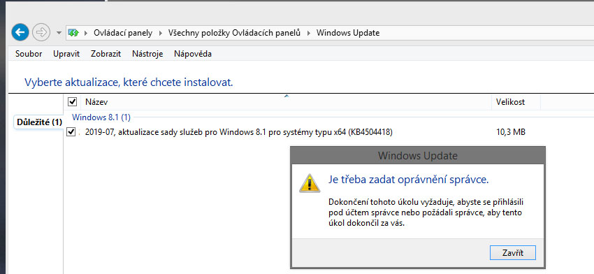 Dnešní další dávka updatů se mému pc nějak nelíbila a po nainstalování prvních 3 a restartu se chystal stáhnou i další. To ale nedopadlo pozitivně a vyhodil hlášku o nutnosti zadat oprávnění správce, viz příloha. V tomto pc jsem admin sám, účet má všechna práva. Jak může mít problém to tam nainstalovat? Je to v nějakých "špatných" aktualizacích?