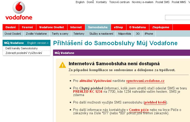 funguje vám Vodafone samoobsluha na samoobsluha.vodafone.cz ?