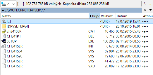 - V pripade ze ten CH341 v drivers neni, tak posilam svoje, "kdyby nahodou". Extrahovat do slozky drivers: