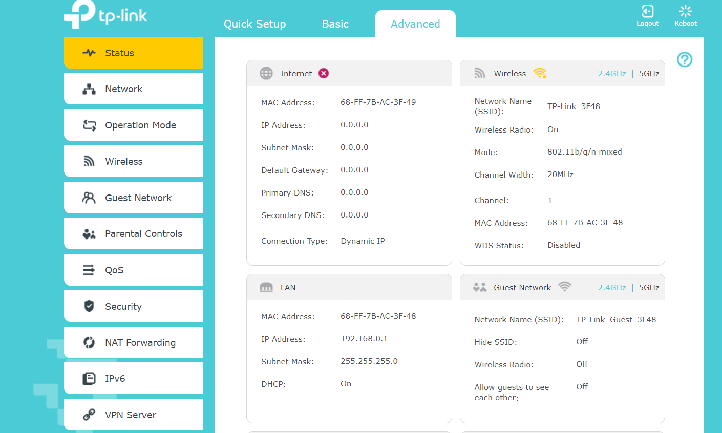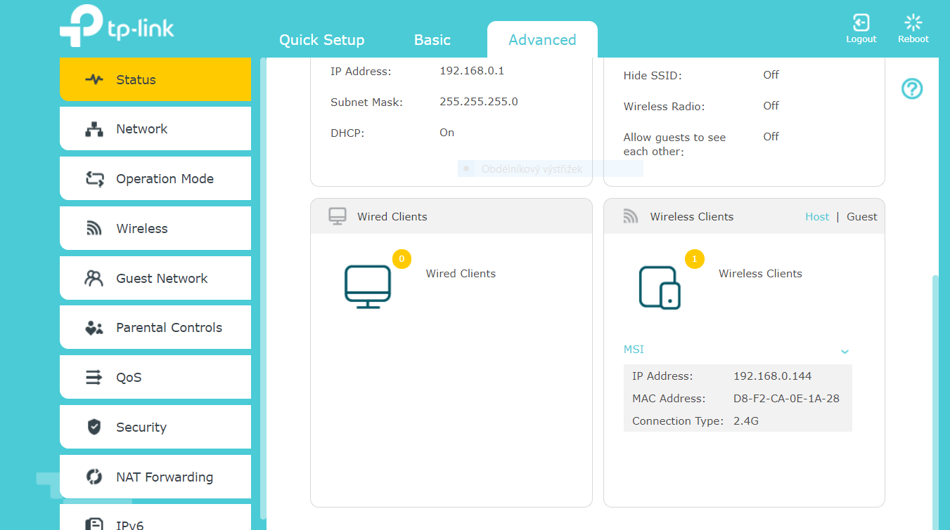 - se zázračně ven připojoval a možná ještě některá zařízení připojuje, i když tplink ukazuje 0.0.0.0 :-?