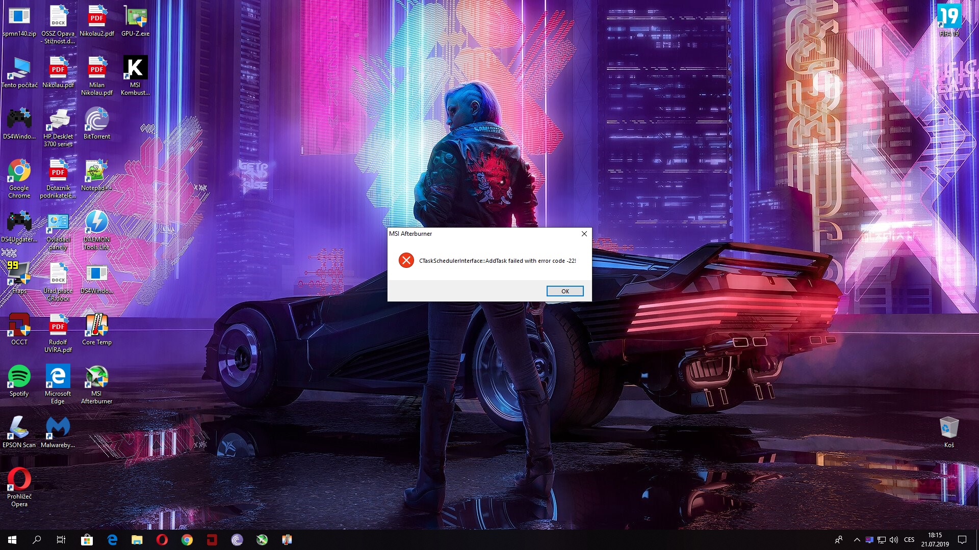 Zdravím všechny. Mám dotaz ohledně MSI Afterburneru. Při spuštění počítače se automaticky zapne a nastaví křivku chlazení. Při hře není problém, grafika si sama nastaví otáčky podle teploty. Teplota při hraní FIFA 19 se pohybuje kolem 45 stupňů Celsia,při 40% fan speed. Problém nastane tehdy když chci počítač vypnout,tak MSI Afterburner zabraňuje vypnutí PC a musím vynutit jeho vypnutí. Proč jen tento program znemožňuje vypnutí PC? U ostatních programů které používám se tento problém nevyskytuje. Děkuji.