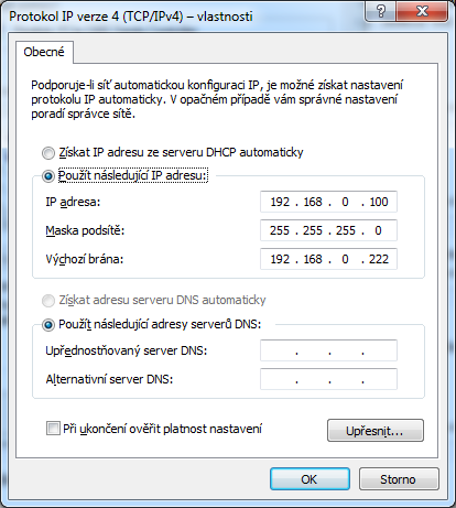 ad tvůj pc obrázek https://pc.poradna.net/files/87836-ipv4protokol-png ... bránu jsi jen pro dočasné připojení kvůli nastavení neměl vyplňovat.