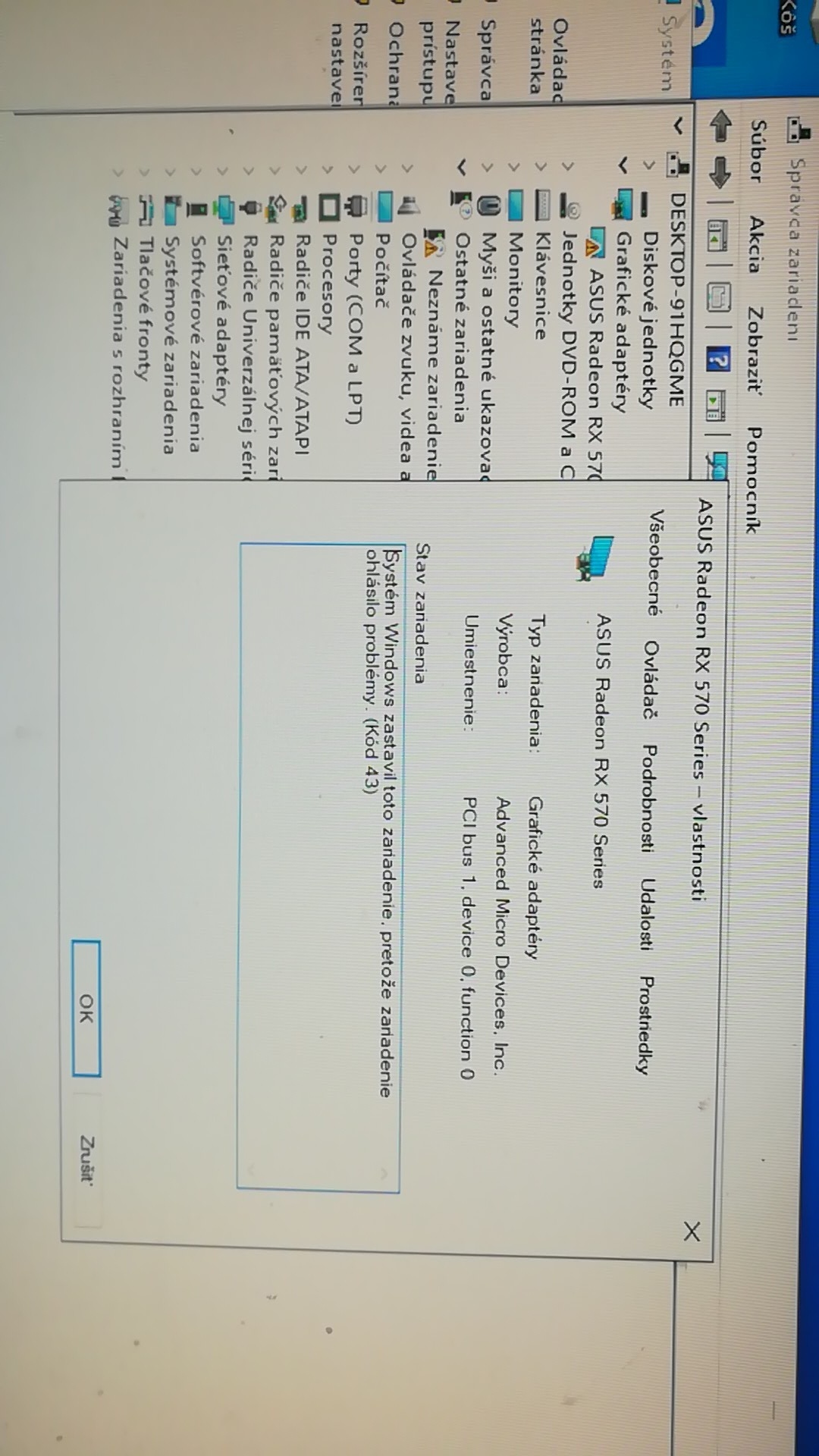 Dobrý deň, mám menší problém s grafickou kartou. Nejdú nainštalovať ovládače a grafiku systém vypne kvôli chybe kódu 43. Prosím o pomoc už som skúsil všetko aj amd stranky aj cdecko ku grafike všetko.