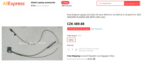 Dobry den. Shanim pro notebook Acer Nitro AN515-51 kabel DC02002VR00 ACER LCD CABLE EDP C5PRH. Nevite kee bych ho mohl sehnat? Dekuji.
