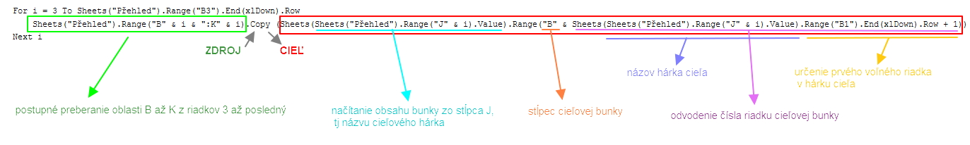 Sheets("Přehled").Range("B" & i & ":K" & i).Copy (Sheets(Sheets("Přehled").Range("J" & i).Value).Range("B" & Sheets(Sheets("Přehled").Range("J" & i).Value).Range("B1").End(xlDown).Row + 1))