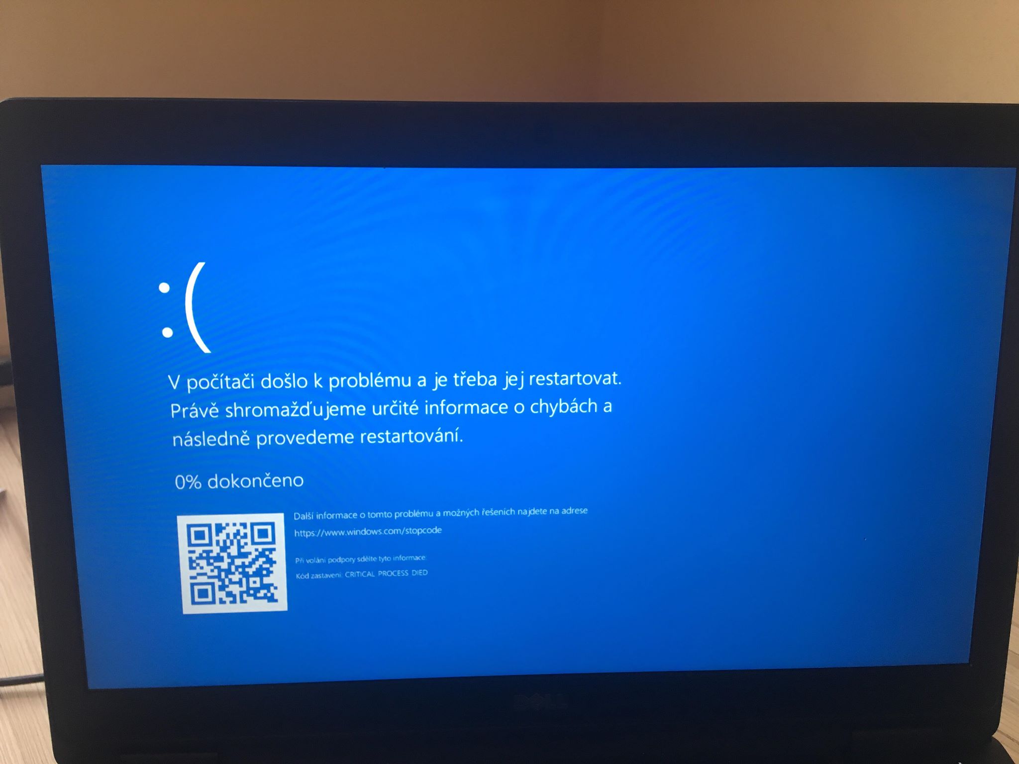 Dobrý den, před pár dny jsem si pořídil repasovaný notebook Dell Latitude 5580. Bohužel se mi počítač po cca 5 hodinách v zapnutém stavu vypne se sdělením - CRITICAL PROCESS DIED (viz foto v příloze). Po manuálním restartování počítač zase cca 5 hodin normálně funguje a pak se tato chyba znova opakuje.