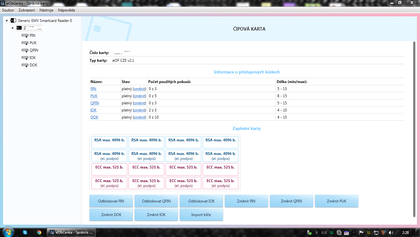 Čtečka je nainstalovaná a funguje. Čipová karta taky nainstalovaná a funguje. Zadané všechny potřebné kódy a na obrázku píšou že jsou platné. Ale dál se to nehne, nevím proč.