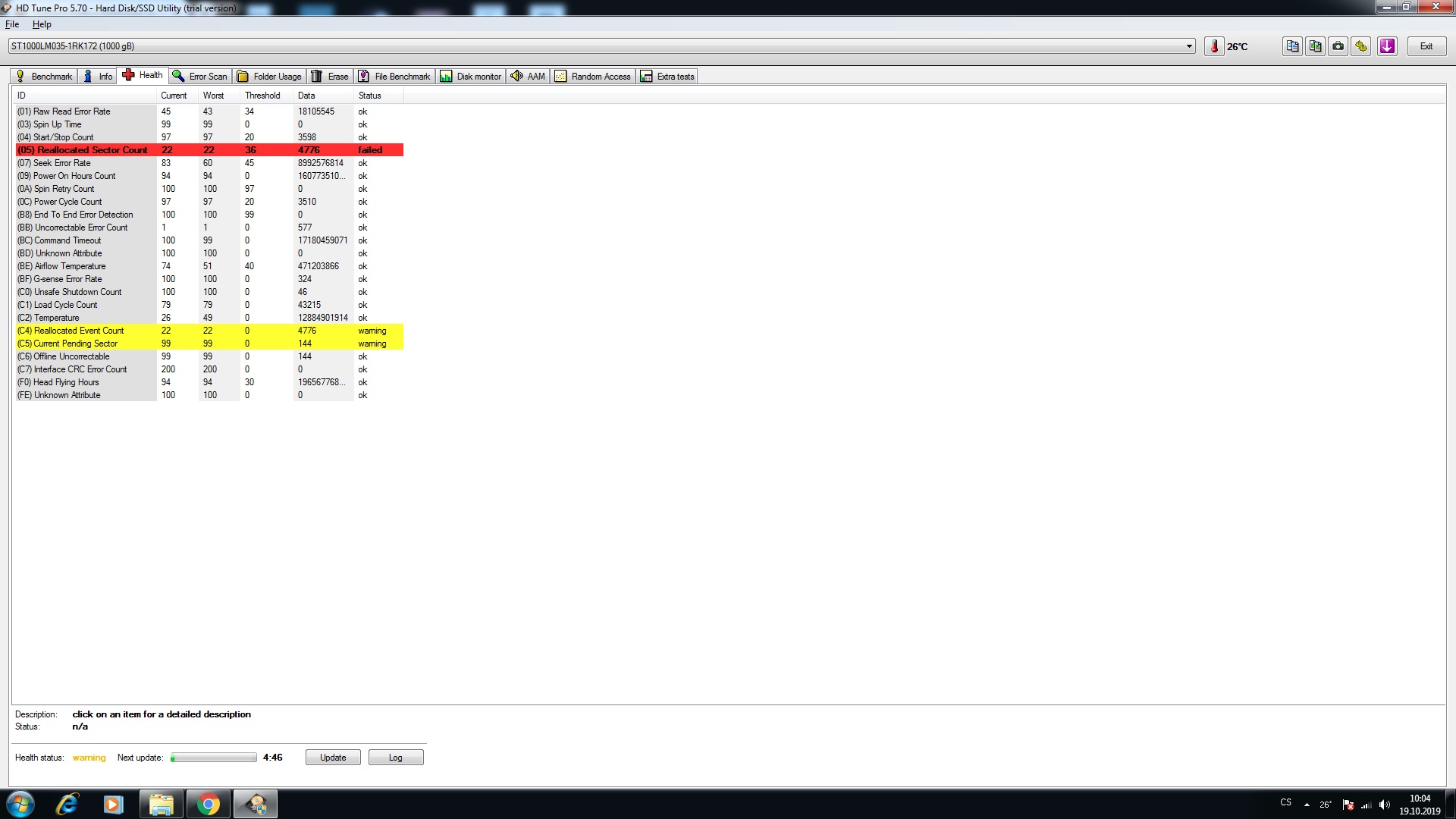 Ajaj, to je hodně špatné. Je tam hodně vadných a podezřelých sektorů. Tu kontrolu povrchu ani nemusí…