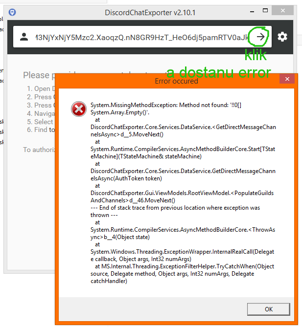 DiscordChatExporter hází error
