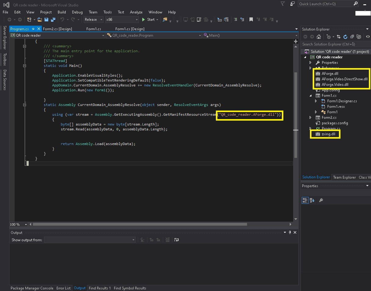 using (var streamv = Assembly.GetExecutingAssembly().GetManifestResourceStream("QR_code_reader.DirectShow.dll"))