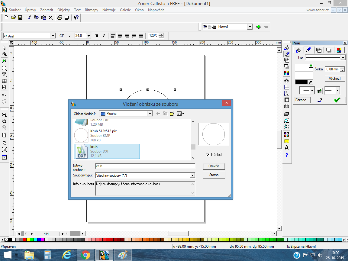 Otevřu Zoner Callisto a dám Import vložit kruh z mnou uloženého souboru DXF má vložený kruh najednou asi 200 uzlových bodů. Co dělám špatně? Přikládám foto obrazovky.