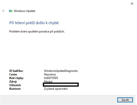Měl by to řešit poradce při potížích, ale ten hlásí také chybu:
