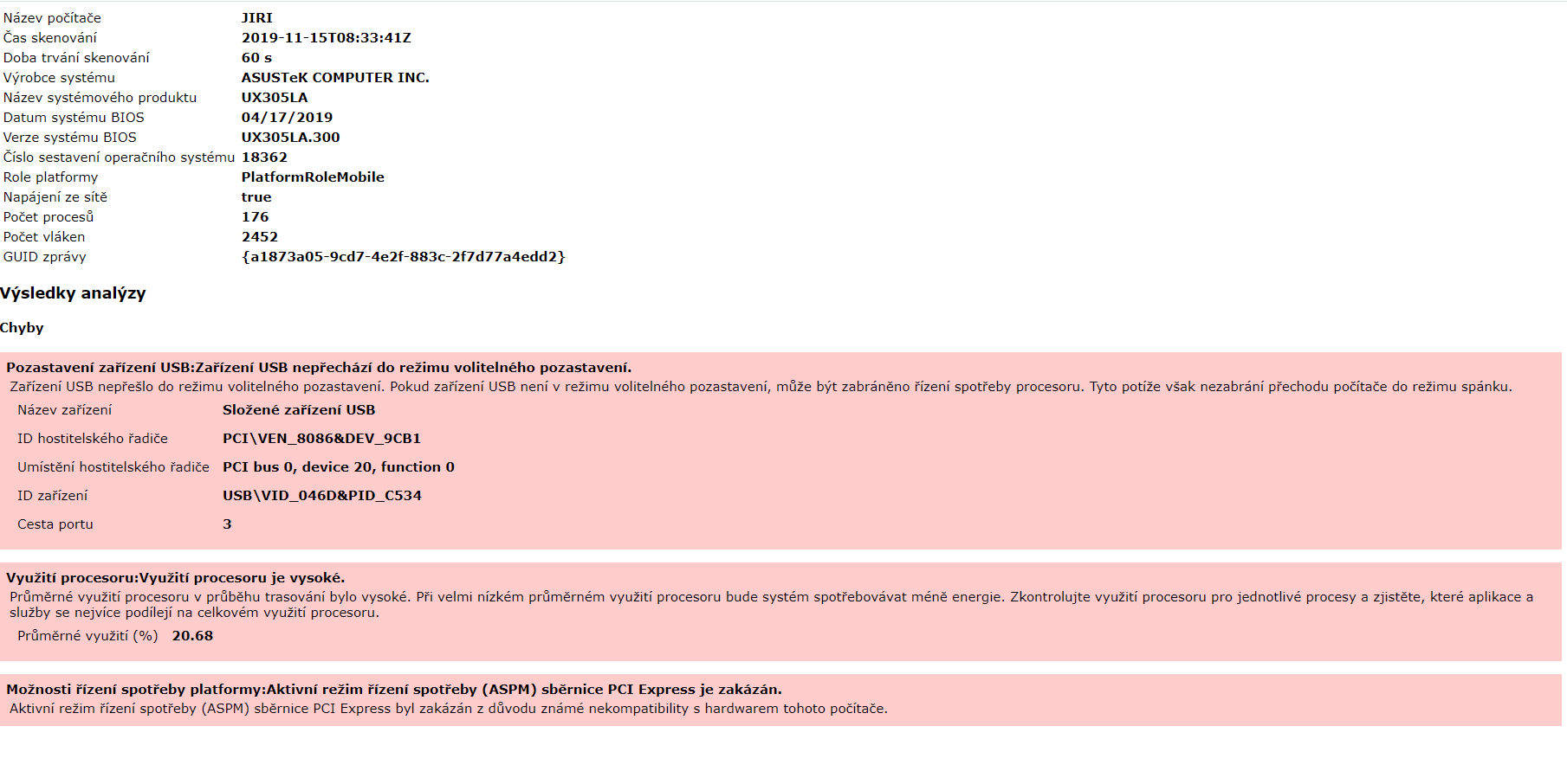 Mohl by jsi ten NTB nechat chvili jen na baterii a na nabíječe a až poté vytvořit zvlášť raport podle zapojení pomocí příkazu z příkazového radku jako správce :