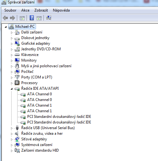 Screen ze spravce zařízení - takže mam IDE a potřebuju přepnout na AHCI nejspíše ? Nejspíše poprosím…