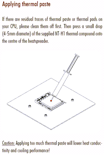 Podle jaké Noctua zase? Tohle je v návodu k tomu chladiči. Není potřeba z toho dělat vědu, chladič není jaderný reaktor. Rozmázne se to samo.