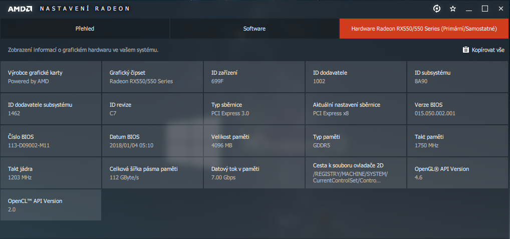 Použil jsem program HW info pro přesné udaje. A přímo program od AMD pro grafiku